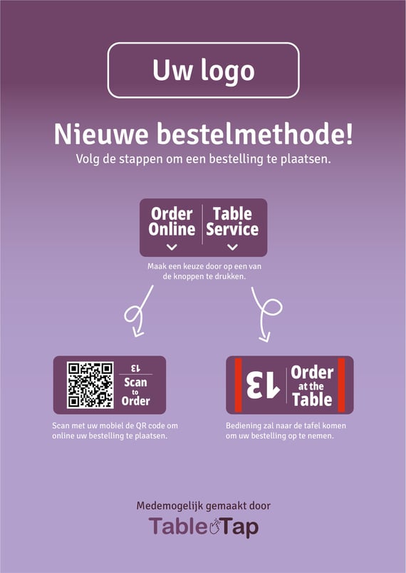Een nieuwe manier van bestelling introduceren is niet gemakkelijk en gasten zullen tal van vragen erover hebben. Om de vragen voor te zijn leveren wij ook een kleine handleiding die u aan uw drank/menu kaart kunt bevestigen. Op deze handleiding staat aangegeven wat de stappen zijn wat ze doen en hoe ze de interface van het schermpje moeten gebruiken.